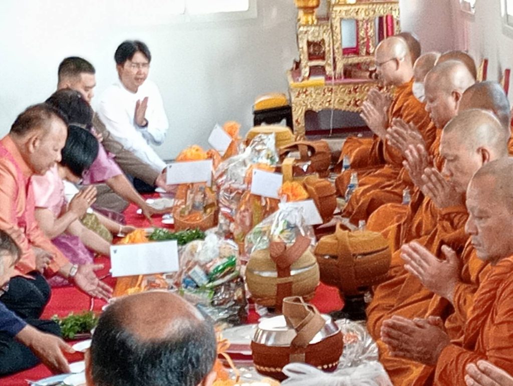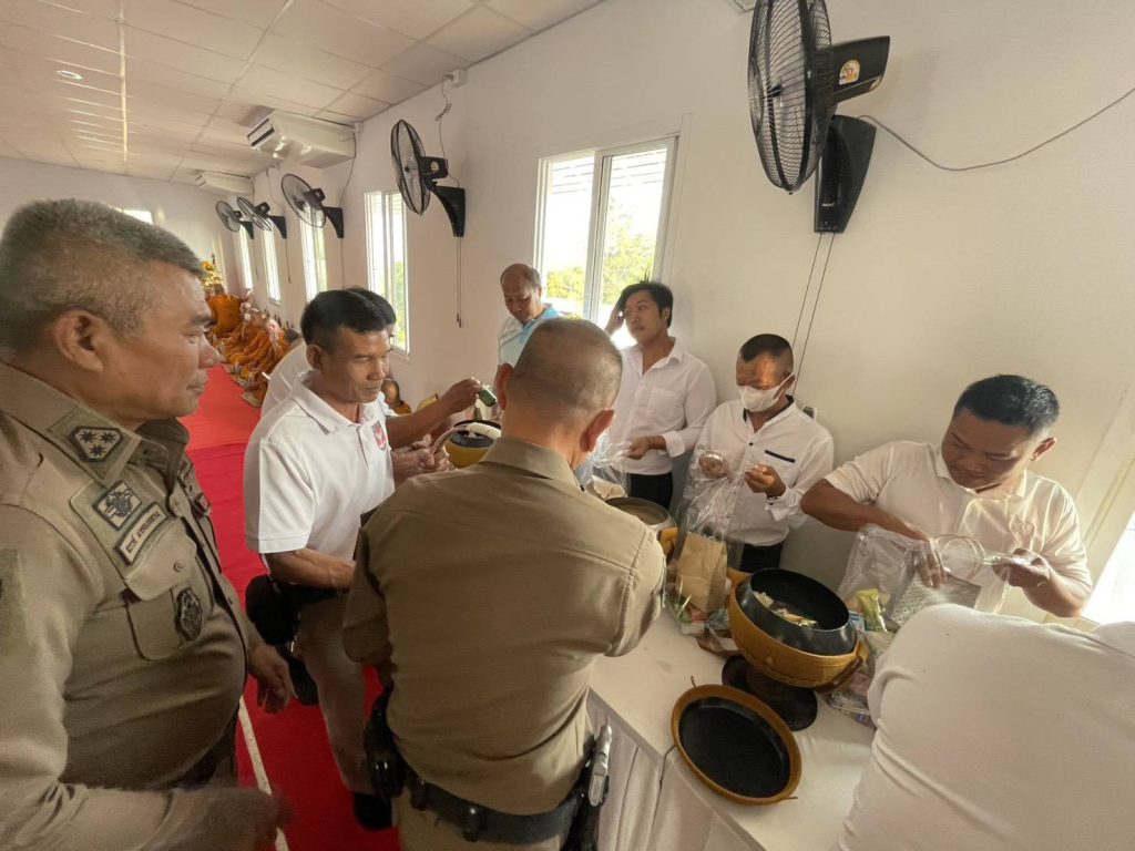 พ.ต.อ.พีรณัฐ งามเลิศรัตนชัย ผกก.สภ.เขาสวนกวาง พร้อมข้าราชการตำรวจ สภ.เขาสวนกวาง ,หัวหน้าส่วนราชการในพื้นที่,ประชาชนชาวอำเภอเขาสวนกวาง ร่วมพิธีทำบุญตักบาตรเนื่องในวันครบรอบ 40 ปีการจัดตั้งอำเภอเขาสวนกวาง