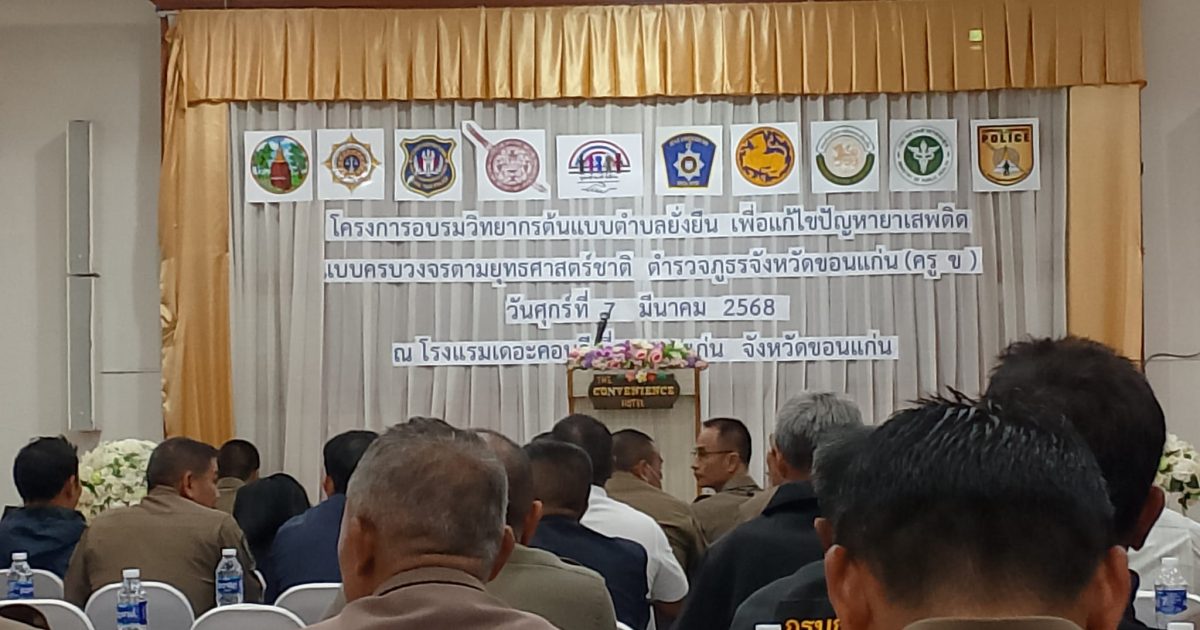 อบรมโครงการอบรมวิทยากรต้นแบบตำบลยั่งยืนเพื่อแก้ไขปัญหายาเสพติดแบบครบวงจรตามยุทธศาสตร์ชาติตำรวจภูธรจังหวัดขอนแก่น(ครู ข.)