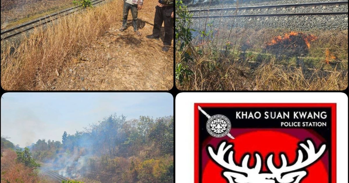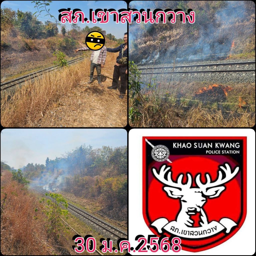 เจ้าหน้าที่สืบสวนได้ออกตรวจสอบพื้นที่รับผิดชอบตามคำสั่งของผู้บังคับบัญชา พบเห็นผู้ลักลอบเผาหญ้าจนลุกลามอาจทำให้เกิดความเสียหายและหมอกควันอย่างหนัก ที่บริเวณริมทางรถไฟ บ้านหัวหนอง หมู่ 10 ต.เขาสวนกวาง อ.เขาสวนกวาง จ.ขอนแก่น สอบถามทราบชื่อ นายสัน นามสมมุติ พร้อมของกลาง -ไฟแช็ค 1 อัน และ ยาบ้า จำนวน 2 เม็ด เจ้าหน้าที่ตำรวจจึงได้แจ้งสิทธิ์ และข้อกล่าวหาให้ทราบ พร้อมทั้งแจ้งเหตุไปที่ศูนย์วิทยุ สภ.เขาสวนกวาง แจ้งเจ้าหน้าที่เกี่ยวข้อง เมื่อไปถึงจึงได้ฉีดน้ำดับเพลิงและปิดกั้นที่เกิดเหตุ จนสามารถควบคุมเพลิงไว้ได้ ต่อมาเจ้าหน้าที่ตำรวจจึงได้ควบคุมผู้ก่อเหตุ พร้อมของกลาง นำตัวส่งพนักงานสอบสวนดำเนินคดีตามกฎหมาย